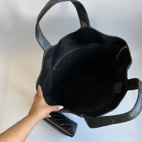 DIE SAINT LAURENT ICARE MAXI TOTE – PREMIUM QUALITÄT IST EIN WAHRES STATEMENT-STÜCK, DAS LUXURIÖSE HANDWERKSKUNST MIT GROßZÜGIGEM DESIGN VEREINT. GEFERTIGT AUS WEICHEM, GESTEPPTEM NAPPALEDER (MATELASSÉ) UND VEREDELT MIT DEM IKONISCHEN, ÜBERGROßEN CASSANDRE-LOGO IN GOLDOPTIK – PERFEKT FÜR STILVOLLE AUFTRITTE MIT MAXIMALER KAPAZITÄT.