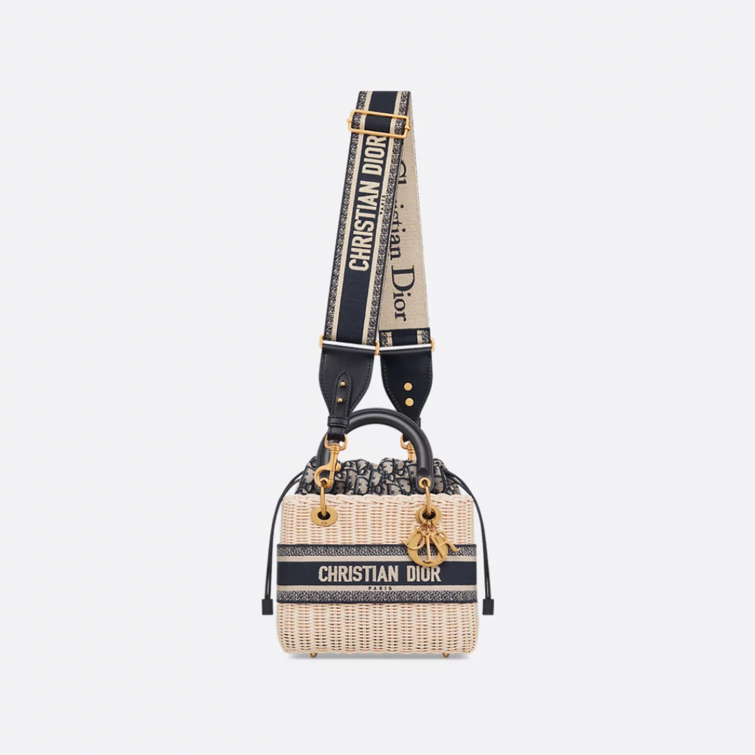 DIE LADY DIOR MEDIUM IN RATTAN – PREMIUM QUALITÄT VEREINT NATÜRLICHE MATERIALIEN MIT LUXURIÖSEM DESIGN. GEFERTIGT AUS HANDGEFLOCHTENEM RATTAN UND VEREDELT MIT EINEM HERAUSNEHMBAREN INNENBEUTEL IM BLAUEN DIOR OBLIQUE JACQUARD, BESTICHT SIE DURCH IKONISCHE DETAILS WIE DIE „CHRISTIAN DIOR PARIS“-STICKEREI UND VERGOLDETE D.I.O.R.-ANHÄNGER – STILVOLL, EINZIGARTIG UND SOMMERLICH-ELEGANT.
