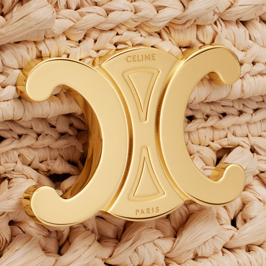 DIE CÉLINE CLAUDE CHAIN SHOULDER BAG – PREMIUM QUALITÄT VEREINT SOMMERLICHE LEICHTIGKEIT MIT IKONISCHEM MINIMALISMUS. GEFERTIGT AUS EINEM RAFFIAÄHNLICHEN TEXTILGEWEBE UND VEREDELT MIT DER GOLDFARBENEN TRIOMPHE-SCHNALLE, IST SIE DIE PERFEKTE WAHL FÜR ELEGANTE ANLÄSSE MIT NATÜRLICHEM CHARME.