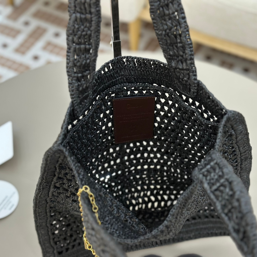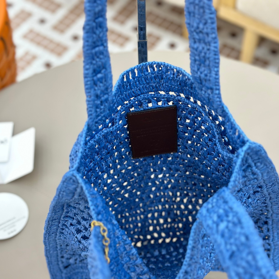 DIE CHLOÉ LARGE WOODY BASKET – PREMIUM QUALITÄT VEREINT SOMMERLICHE LEICHTIGKEIT MIT LUXURIÖSEM HANDWERK. GEFERTIGT AUS HANDGEFLOCHTENER NATUR-RAPHIA UND VEREDELT MIT GLATTEN KALBSLEDERDETAILS, BESTICHT SIE DURCH DIE CHARAKTERISTISCHEN CHLOÉ-LOGOBÄNDER ENTLANG DER HENKEL. GERÄUMIG, LEICHT UND VIELSEITIG – PERFEKT FÜR STRAND, STADT ODER REISEN MIT STIL.